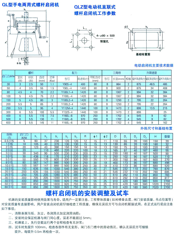 QL型手電兩用式螺桿啟閉機 QLZ型電動機直聯式螺桿啟閉機